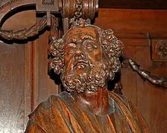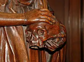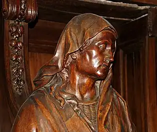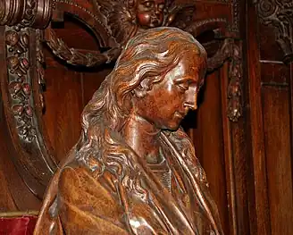 Ces confessionnaux sont ornés de remarquables statues en chêne représentant la Vierge, Marie Madeleine (représentée avec la tête de mort) et des apôtres.