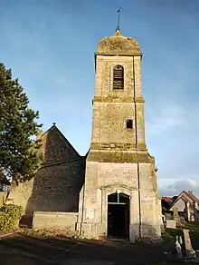 Le chœur est à fond plat et un clocher-porche est situé à l'avant du monument[1].