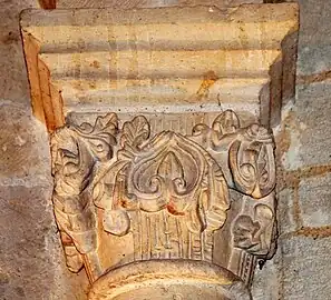 Le chapiteau sud de l'arc est décoré avec des feuillages.