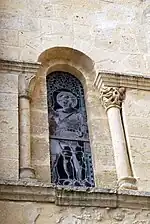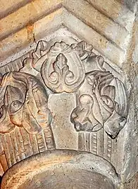 L'arcature qui encadre les neuf baies du sanctuaire comporte six chapiteaux sculptés, dont trois sont figurés.