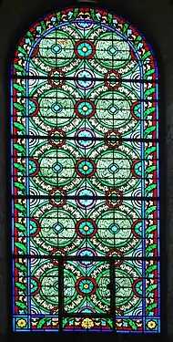 - Les vitraux du bas-côté sud sont des motifs floraux et géométriques.