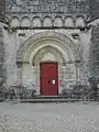 Des chapiteaux ornent également les pieds droits du portail du XIIIe siècle. La voussure supérieure du portail offre une interprétation naïve des Vieillards de l'Apocalypse, représentés maladroitement en position assise. Au-dessus du portail, deux lions en relief se font face et tiennent sous leurs griffes des personnages allongés qu'ils dévorent.
