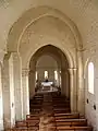 Le plan de l'église est constitué d'une nef unique sans transept, agrémenté de deux chapelles latérales. La nef et le chœur sont couverts d'un berceau brisé. Cependant, la travée sous clocher présente une coupole nervée (compromis entre la coupole et la croisée d'ogive primitive).