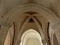 L'abside demi-circulaire, voûtée en cul-de-four, est éclairée par cinq fenêtres romanes à colonnettes.