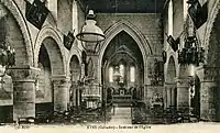 La nef a gardé intactes ses arcades romanes du XIe siècle avec ses piliers cylindriques, ses chapiteaux décorés de godrons, de feuillages et de personnages fantastiques et ses archivoltes sont ornées de bâtons brisés. Les sculptures des chapiteaux surmontant les piliers ont été décrites par Arcisse de Caumont qui n'ont pas été retouchés depuis 1825, date de parution de son ouvrage Essai sur l'architecture religieuse du Moyen Âge principalement en Normandie.