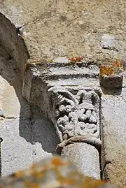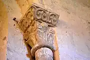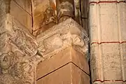 La corbeille d'un des chapiteaux du sud est entourée de feuilles à crochets. Un autre est formé de feuilles surmontées de raisins, avec un tailloir couvert d‘entrelacs.
