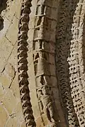 Chaque arc est composé de deux parties : de l’arc proprement dit formé d’une suite de claveaux, et, au-dessus, d’un cordon ou archivolte qui encadre les claveaux ; les arcs et les archivoltes sont couverts de sculptures de formes très variées.