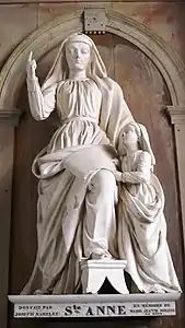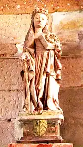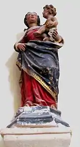 Classé MH, toutes deux du XVe siècle en pierre polychrome, offertes par les Rolin à l'église ; - une statue en pierre XVIe siècle de la Charité de saint Martin portant le collier de Saint-Michel