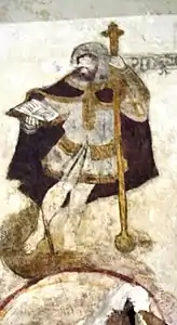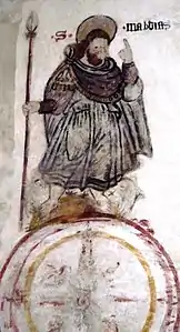 On note des vitraux remarquables[2], une dizaine de fresques du XVe siècle représentent des apôtres et des évangélistes au-dessus des croix de consécration et, entre autres, quatre statues classées monuments historiques :