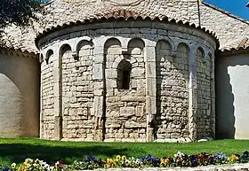 L'église possède un superbe chevet de style roman lombard (premier âge roman) à abside unique édifié en pierre calcaire[1].
