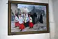 - Une procession devant l'église, peinte en 1903, et deux scènes des paroissiens à l'extérieur et à l'intérieur de l'église.