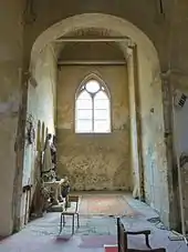 Dans le croisillon sud, la haute et large arcade en tiers-point, également bouchée, montre que l'absidiole a été remplacée par une chapelle plus grande à la période gothique, disparue à son tour. L'arcade n'était pas moulurée, et simplement chanfreinée, et retombait à droite sur un tailloir sculpté de fleurs à cinq pétales. Ce remaniement pourrait remonter à la même époque que la construction de la voûte d'ogives sous la base du clocher. Trois niches à statues terminées en coquille Saint-Jacques et une petite piscine sont ménagées dans le mur qui bouche l'arcade. C'est donc vraisemblablement dès la Renaissance que la chapelle a été supprimée, ou transformée en sacristie (qui occupe actuellement son emplacement).
