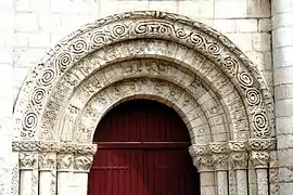 - La troisième voussure est décorée avec des entrelacs et feuillages stylisés.