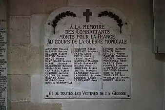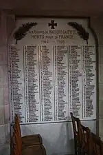 On y trouve la présence de deux sculptures du XVIIe siècle. La chaire s'y trouve encore bien que de nombreux élements de mobilier aient disparu après le concile Vatican II[6].