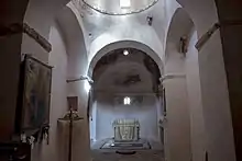 L'église possède un dôme de grande taille, une large abside, ainsi que des portes et des fenêtres de petite taille. À l'intérieur, l'église est initialement décorée de motifs géométriques et floraux, ce qui suggère que la décoration est réalisée pendant la période iconoclaste située entre le VIIIe et le IXe siècle. Le bâtiment de l'église est restauré à la suite du tremblement de terre de 1303 et décoré de peintures murales typiques représentant divers saints de l'église[1],[2].