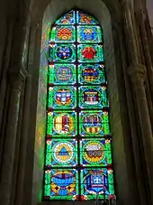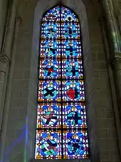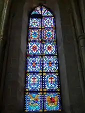 Le vitrail occidental du bas-côté sud concerne la petite baie au-dessus du portail, et a été réalisé en 1856. Dédié à l'Immaculée Conception, il représente des fleurs de lys comme symboles de la pureté au centre, entourées d'une inscription en latin qui se traduit par « Ô Marie conçue sans péché, prie pour nous [qui avons recours à toi] ». Ce petit vitrail a été restauré en 2011[9].