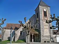 Le cœur et le clocher sont détruits par un incendie en 1752, et restaurés en 1753 avec des lambris du château de Fontainebleau. Le clocher est à nouveau incendié et reconstruit vers 1765 grâce à un don financier du roi Louis XV et de Madame de Pompadour[8],[9]. Les trois cloches (Lucie-Gabrielle, Lucienne-Marcelle, et Solange) ont remplacé à ce jour le gros bourdon fêlé qui sonnait L'Angélus de Jean-François Millet au XIXe siècle.