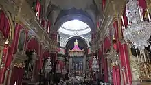 L'église est une basilique cruciforme à trois nefs avec un haut dôme traversant. Elle est riche en autels, statues et peintures d'artistes importants des XVIIIe et XIXe siècles. Stefano Erardi a créé le grand tableau du maître-autel Naufrage de St-Paul. Parmi les images sur les autels latéraux figurent une représentation de Saint Publius par Mattia Preti, ainsi que la Dernière Cène et la Sainte Famille par Francesco Zahra.