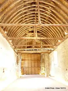 La nef unique et les transepts portent une charpente en chêne dite en nef de vaisseau renversé, (car généralement construite par les charpentiers de marine pendant la saison hivernale). Elle est de facture gothique, et peut-être antérieure au XVe siècle. Elle était recouverte par un lambris aux larges planches enduites d'ocre, dont une porte la date de 1770.