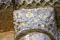 Le chapiteau A est très érodé et il n'est pas possible de donner une interprétation, autre qu'il s'agit d'animaux, probablement ailés. Le deuxième , mieux conservé, porte un décor de cercles enlacées.