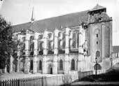 Chevet, depuis la rue de l'Âne-Rez. En arrière-plan, la cathédrale Notre-Dame.