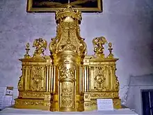 Œuvre remarquable, l'ancien autel, en marbre rose du Languedoc, situé actuellement dans la chapelle Saint-François-Régis, doré à la feuille, date du début du XVIIIe siècle[11] (style Louis XIV). Il proviendrait de l'ancienne abbaye des Chambons pillée lors des guerres de Religion et détruite en 1790. Le tabernacle est classé monuments historiques. L'autel est surmonté par le tableau représentant le jésuite saint Régis (1597-1640), apôtre du Vivarais.