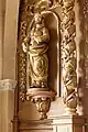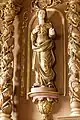 À l'entrée se trouve un porche en forme rectangulaire. L’église n'a qu'une nef avec deux chapelles latérales dédiées au Sacré-Cœur et à la Vierge Marie. Un grand retable en bois doré couvre tout le fond du sanctuaire. Il se compose d'une boiserie peinte aux ornements divers. De chaque côté se trouvent des statues qui produisent un certain effet : saint Pierre et saint Paul, la Vierge Marie et l'ange Gabriel. Quatre colonnes torses, autour desquelles s'enroulent des branches de vigne, complètent l'ensemble. Le retable date peut-être du XVIIe ou XVIIIe, la datation semble difficile.