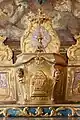 Les portails en bois sculptés dans la masse semblent curieux. La statue de Notre Dame a parcouru les paroisses de la région d'Aire et de Villeneuve de Marsan en en des processions mémorables. Elle a figuré à l'exposition d'Art sacré de Dax en 1955[1].