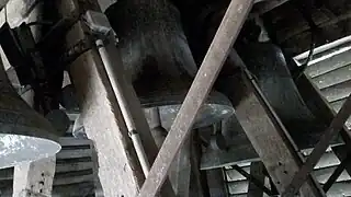 - Le quatrième niveau construit en 1865 abrite les trois cloches et son beffroi.