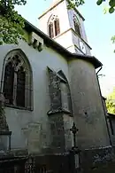 L'édifice religieux est à l'origine une chapelle castrale du XIIe siècle dont le plus visible des vestiges est la tour romane.