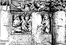 L'œuvre montrant aujourd'hui quelques signes d'érosion, on peut, pour appuyer la description, faire référence à un dessin de Léo Drouyn datant de 1880 et montrant quelques détails aujourd'hui disparus[3].