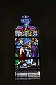 Michel terrassant le dragon : Cette corbeille (avec sa voisine directe au sud consacrée à Daniel dans la fosse) est une des pièces maîtresses de l'église. L'énorme dragon aux pattes ailées est vaincu par un petit ange aux pieds nus. La figuration de l'ange est générique : une tête nimbée, le visage stoïque, les ailes éployées et le geste impérieux et victorieux. Le fer de lance transperce le gosier du dragon.