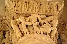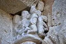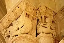 La composition est une copie d'un grand chapiteau de l'abbaye de La Sauve-Majeure.