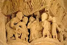 Samson et le lion de Thamnatha : Les exploits de Samson (contre les Philistins, avec Dalila, tuerie du lion) comme décrites dans le livre des Juges, chapitres XIII à XVI, étaient très populaires dans l'iconographie romane. La plus fréquente représentation était Samson tuant le lion de Timnath à mains nues (chapitre XIV, v 6).