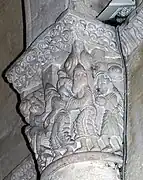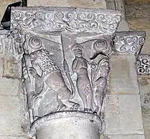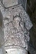 Trois des chapiteaux ont une décoration végétale soignée. Celui du nord-est est historié.