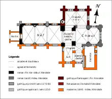 | Début de la construction | fin XIe / 1er quart XIIe siècle (nef) ; milieu XIIe siècle (chœur) | ||