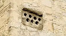 Il existe sur le même mur, à hauteur de la troisième travée, une autre baie cintrée, complètement murée.
