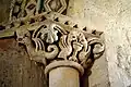 La facture de ce chapiteau diffère des quatre chapiteaux romans. Il n'est ni de la même main, ni de la même époque.