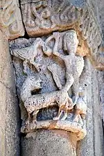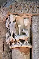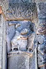 Il représente deux lions et est sans rapport avec les leçons de moralité des autres chapiteaux du portail.