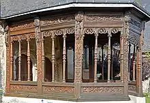L'église comporte une tour centrale du XIIe siècle et un porche en bois du XVIe siècle possédant trois pans et une voûte en carène[A 2]. Le porche comporte des représentations de saints et apôtres, ainsi qu'une représentation d'un personnage agenouillé, peut-être le donateur[A 3].