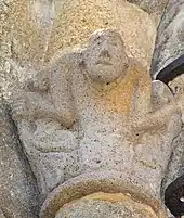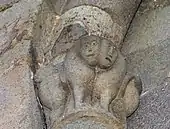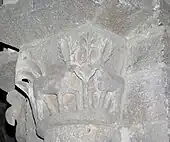 Chapiteau orné de têtes, rinceaux et entrelacs.
