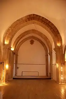 Les murs et la voûte couverts d'un enduit blanc mettent en valeur les éléments où la pierre de taille est restée apparente, comme les pilastres, les arcs-doubleaux de style ogival et les arcs de décharge latéraux en plein cintre.
