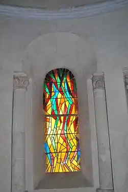 Les vitraux du sanctuaire ont été posés durant la restauration de 1963-65. Ils sont l’œuvre du maitre verrier Raymond Mirande (1932-1997).
