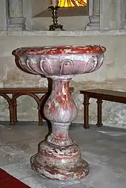 - L'église abrite deux statues en albâtre d'origine anglaise. Situées dans des niches à l'entrée de l'édifice, elles représentent Sainte Catherine et Saint Jean-Baptiste et sont datées du XVe siècle. Elles sont toutes les deux classées[6],[7] au titre d'objet aux Monuments Historiques, le et le .