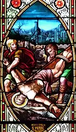 - Vitraux figurant Notre-Dame de Buglose et sainte Catherine