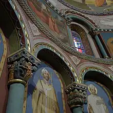 - le Jugement dernier, les martyrs et les évêques locaux de l'abside[N 3], l'Agonie dans le jardin des oliviers[N 4], la Résurrection du Christ[N 5], les anges[N 6] sont dus au peintre Romain Cazes, peintre d'histoire à Paris, élève d'Ingres[N 7].