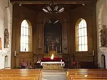 Les contreforts datent du XIVe siècle et les boiseries et pilastres corinthiens du XVIIIe siècle[3].