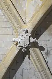 - Une plaque en marbre datant du XVIe siècle commémore le souvenir de Nicolas Dieusit, mort en 1553, et de son épouse Nicole Barbin. En haut sont représentés les défunts, accompagnés de leurs enfants et agenouillés devant le Christ en croix, en bas on voit les armes des deux familles[6].