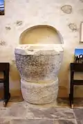 - des fonts baptismaux (cuve baptismale) du XVIe[7] ;