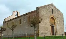 Elle se trouve dans le bourg, au sommet d'une colline, autour de laquelle les maisons se sont construites au fil des siècles.